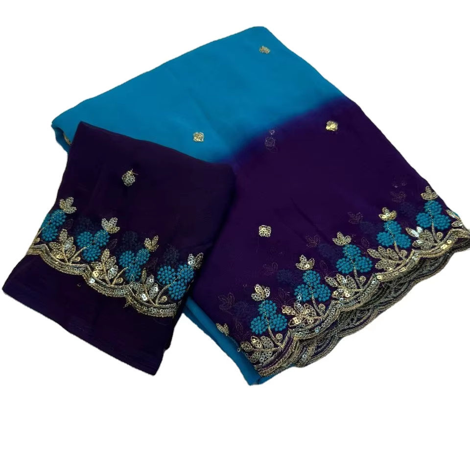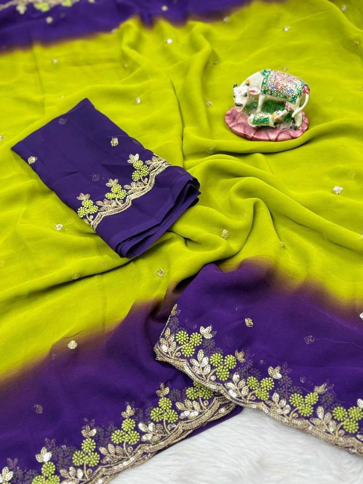 Daily Routine Special Georgette Silk Faux Fur Bright Color Embroidery Summer Comfort Party Running Saree Blouse Piece Sun