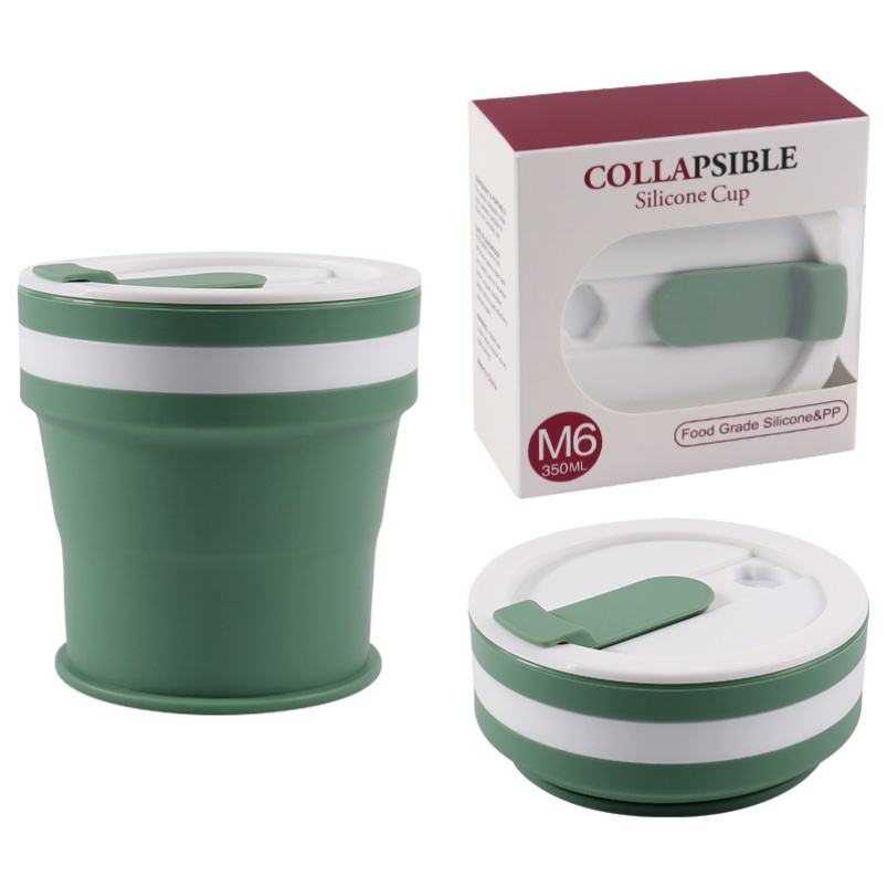 Daily Use Reusable 350ml Food Safe Silicone Collapsible Travel Mug Folding Coffee Tea Drinking Cup Water Bottle Cups with Lid