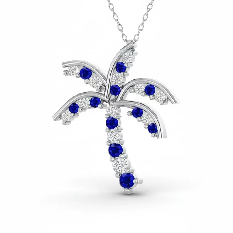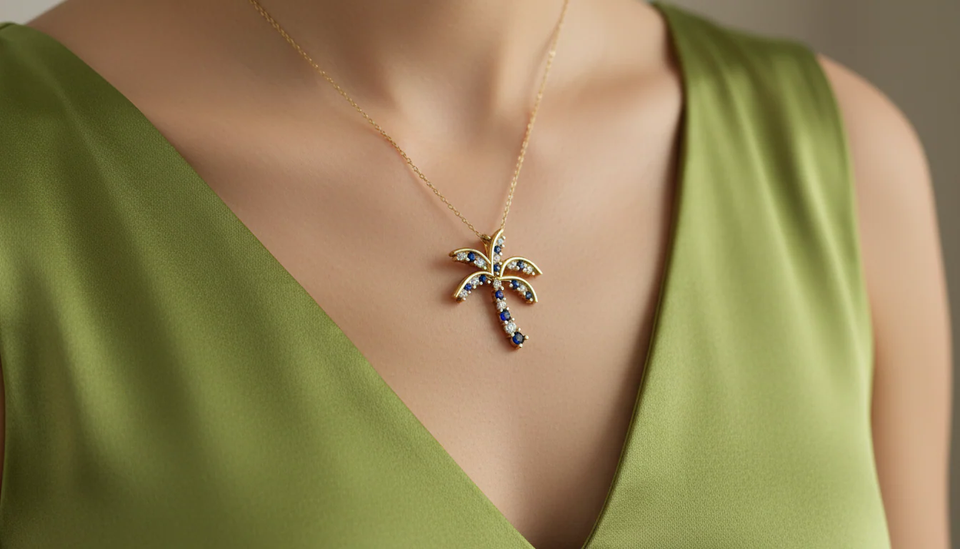 Daily Wear 14K Gold Diamond Tropical Palm Tree Necklace with Chain for Women | Women’s Jewelry