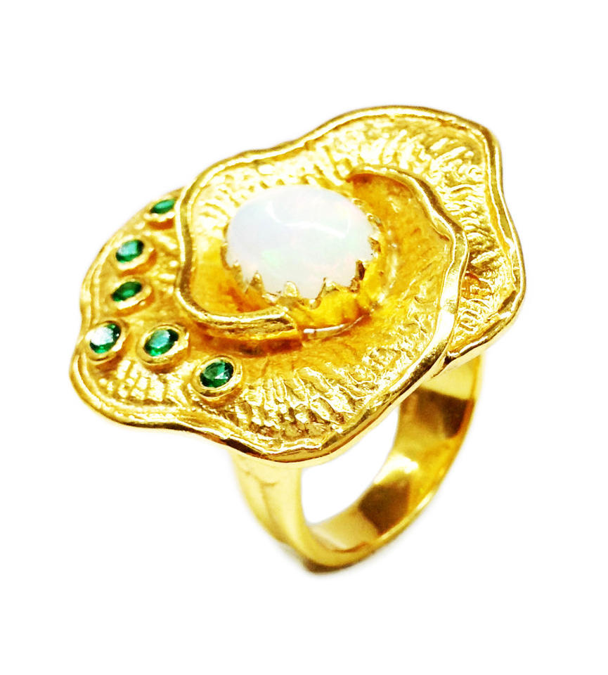 Daily Wear 925 Sterling Silver Gold Plated Emerald Opal Gemstone Vintage Style Luxury Fashion Finger Ring