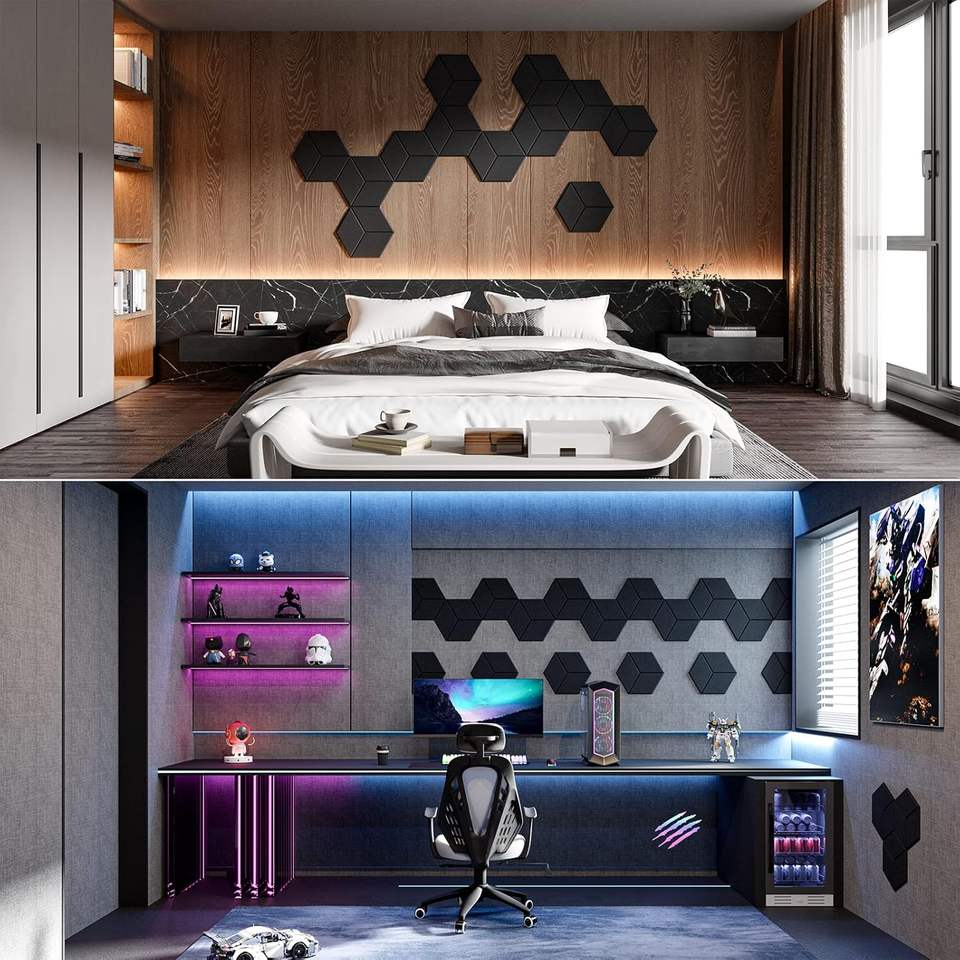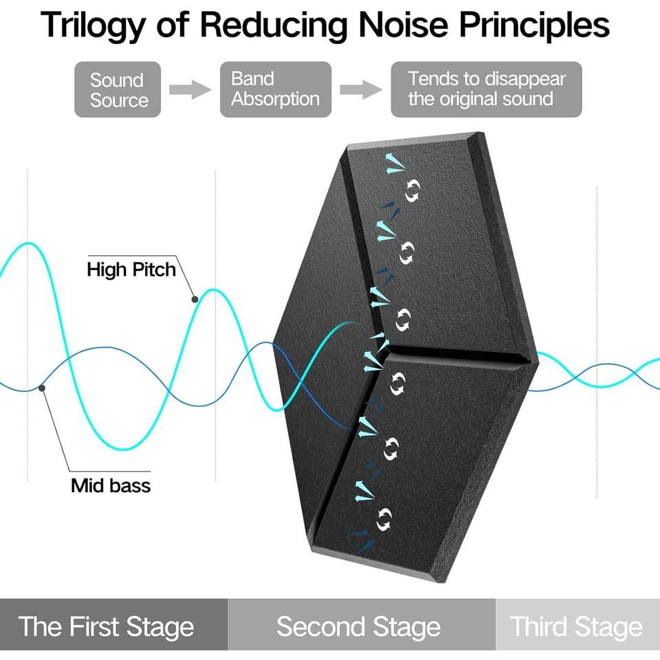 Dailycooper 12-Pack 12.1" X 10.9" X 0.4" Self-Adhesive Black Acoustic Panels High Density Sound Proof Foam Living Room Wall