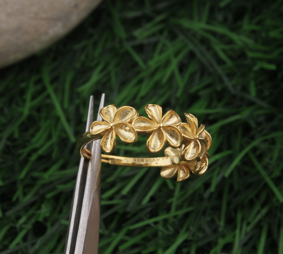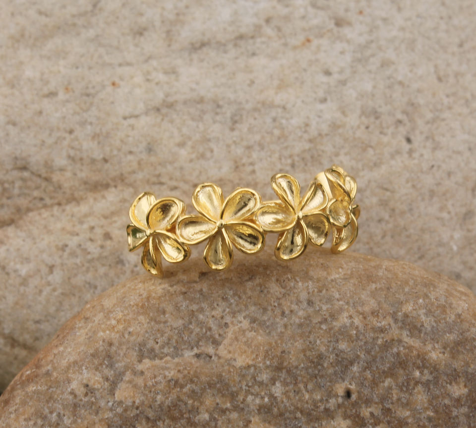 Dainty 18K Gold Plated Sterling Silver Flower Band Ring for Women Classic Wedding Floral Stacking Ring Daisy Rose Blossom
