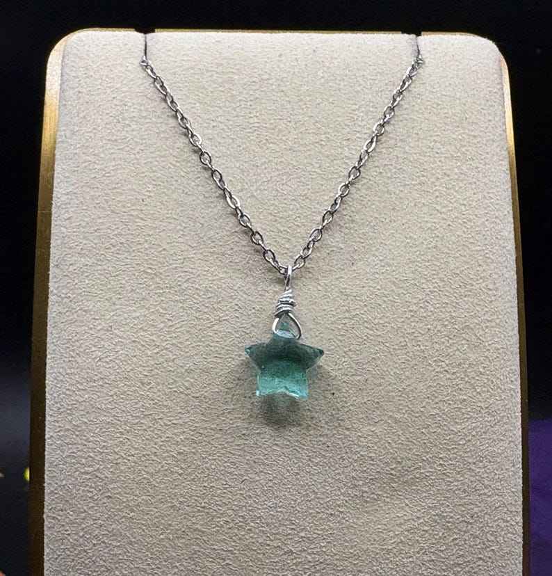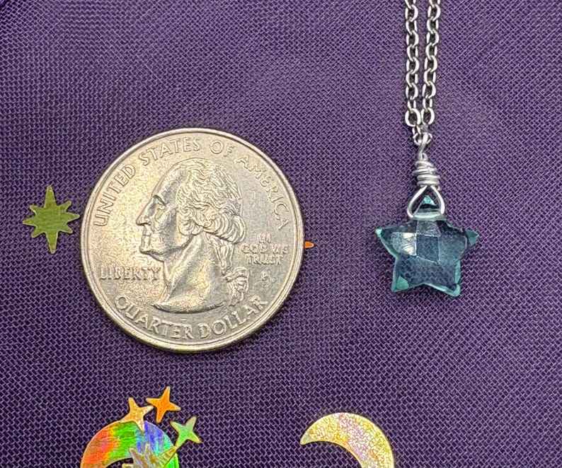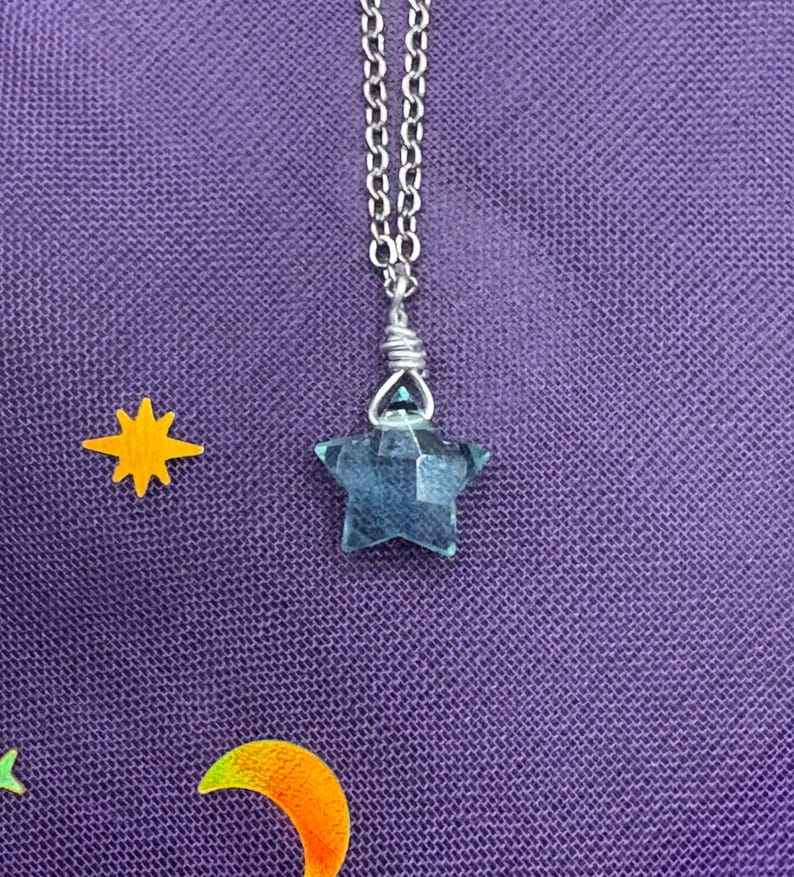 Dainty Aquamarine Faceted Star Pendant Necklace Natural Gemstone Sterling Silver Handmade Jewelry