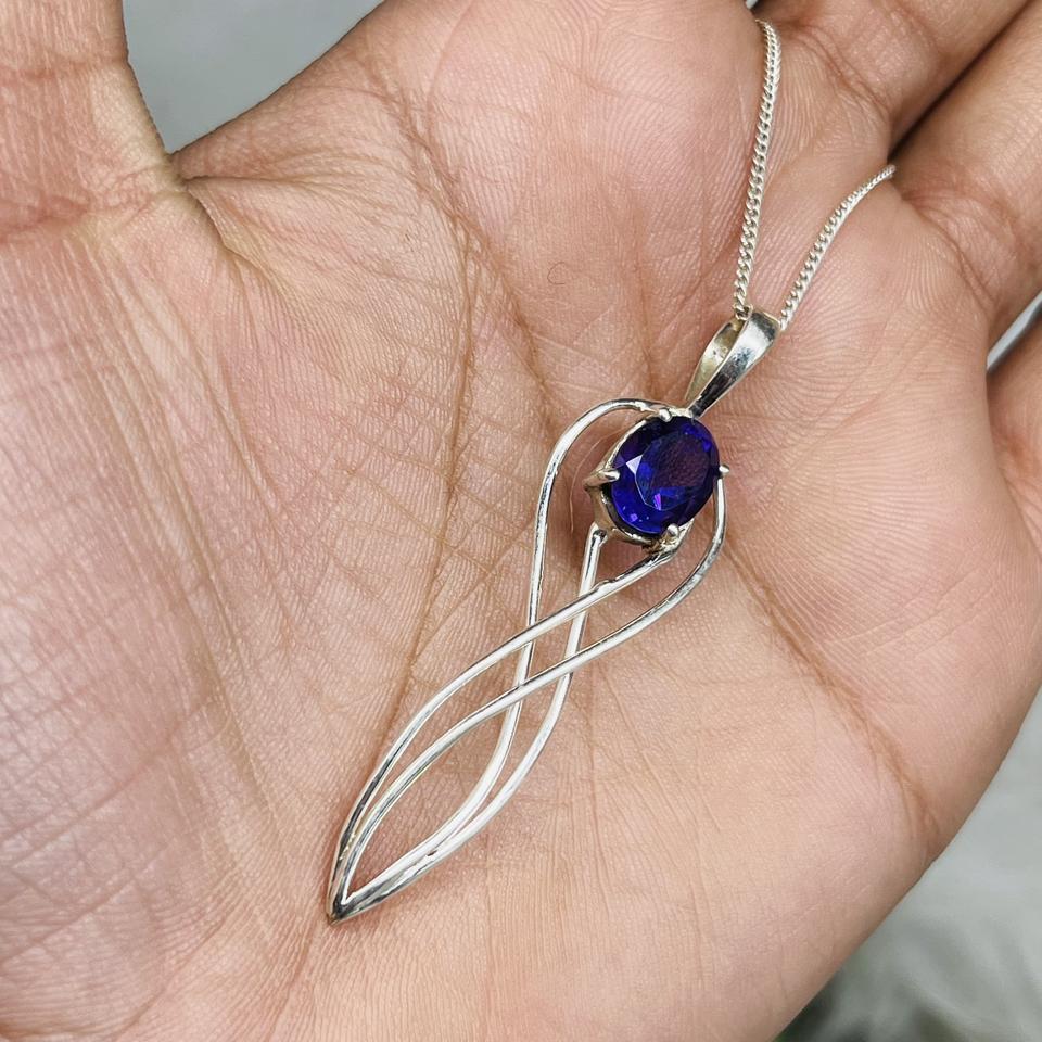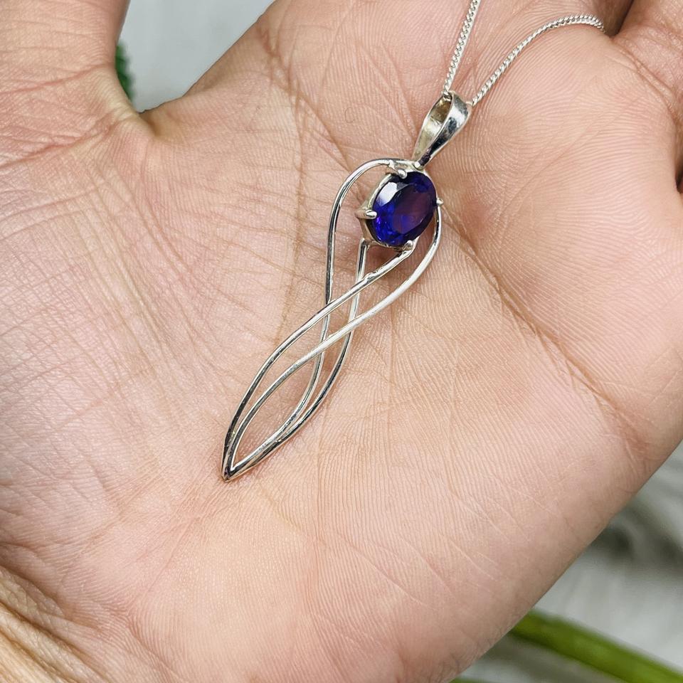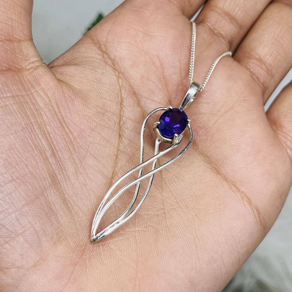 Dainty Blue Amethyst Halo Pendant Necklace with Bezel Setting Heart-Shaped Chain for Parties and Birthdays