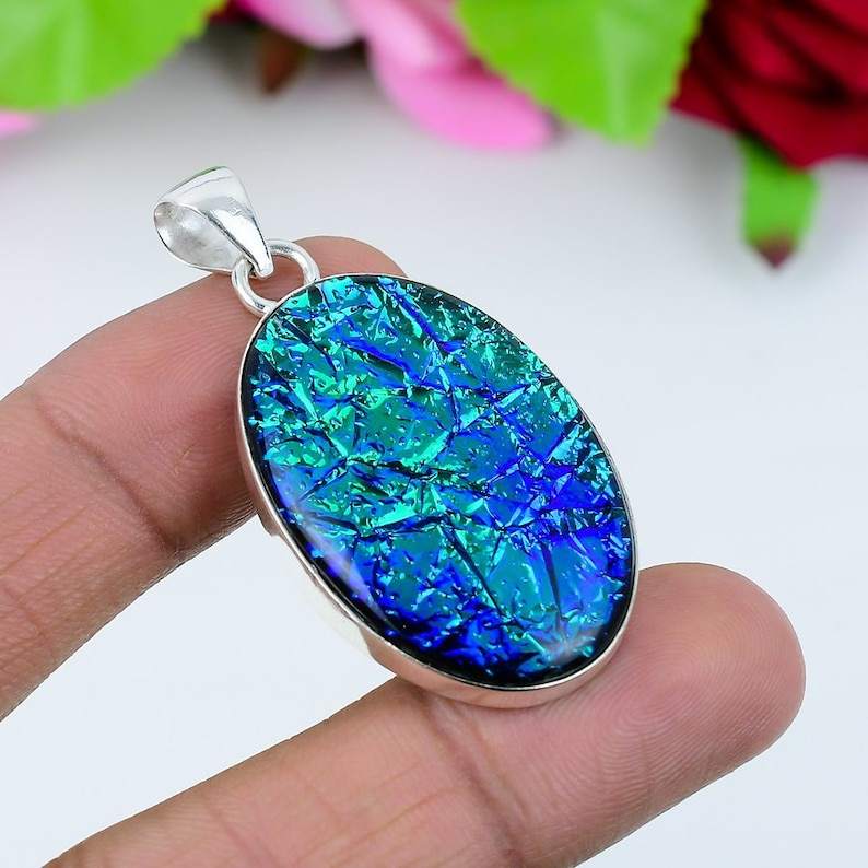 Dainty Blue Triplet Opal Gemstone Ring 925 Sterling Silver Pendant Handmade Jewelry Unique Silver Gift For Father Day