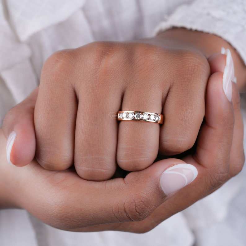 Dainty Design Luxury Hand Crafted Channel Set Round Lab Diamond Half Eternity Wedding Bands 18k 14k Pure Gold Bridal Rings OEM