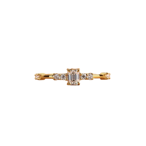 Dainty Emerald Cut Lab Grown Diamond Ring - Solid Gold Minimalist Wedding Band