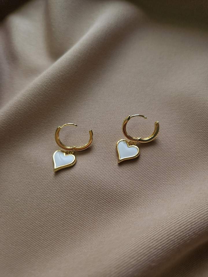 Dainty Heart Dangle Hoop Earrings 925 Sterling Silver 14K Gold Plated Minimalist Drop Heart Jewelry Gift For Girlfriend