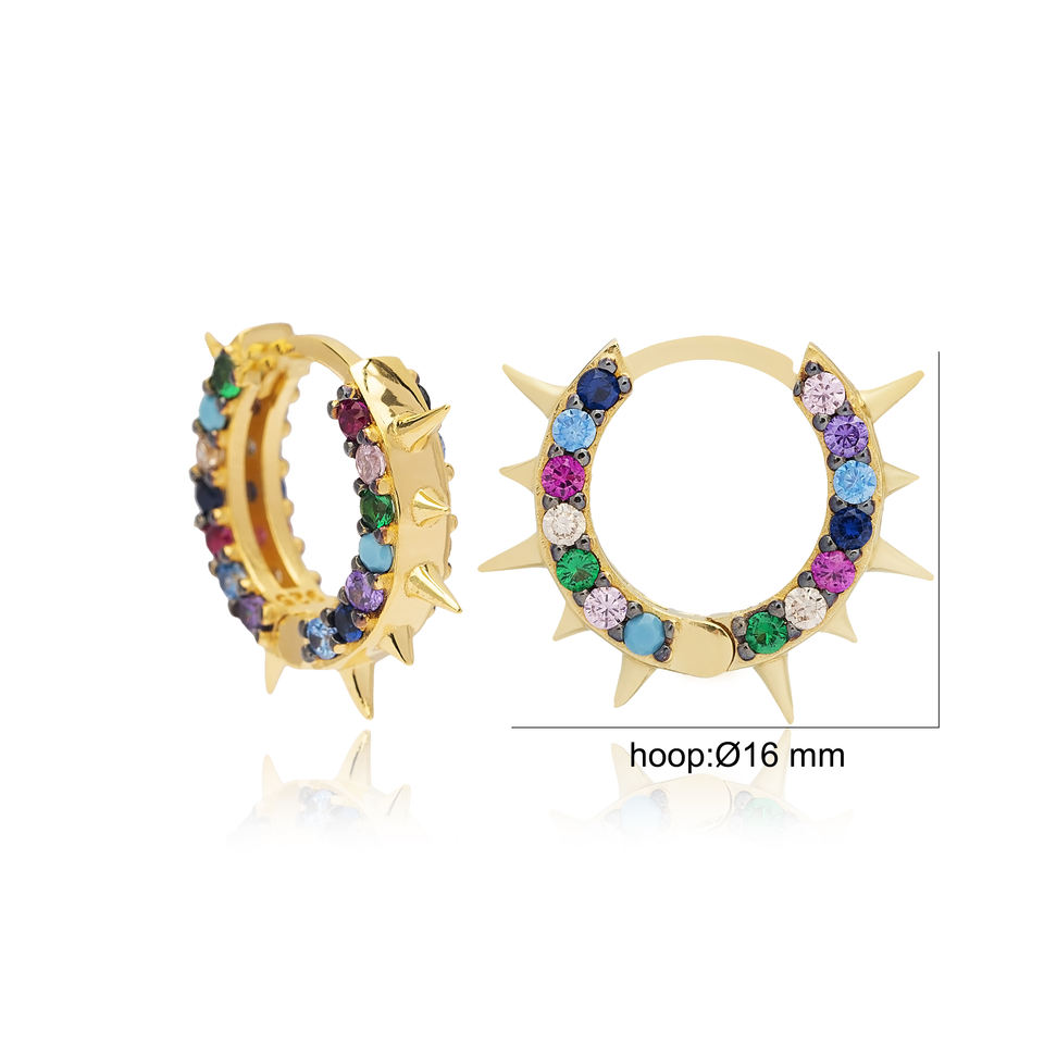Dainty Hollow Round 16 mm Mix Zircon Stone Spike Hoop Design Hoop Earrings 925 Sterling Silver Jewelry