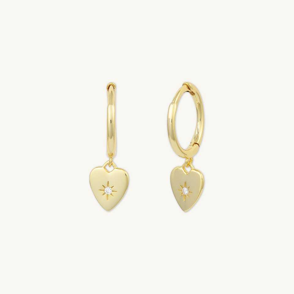 Dainty 925 Sterling Silver North Star Heart Huggie Hoop Earrings Beautiful Moissanite Design Vintage Women's Collection