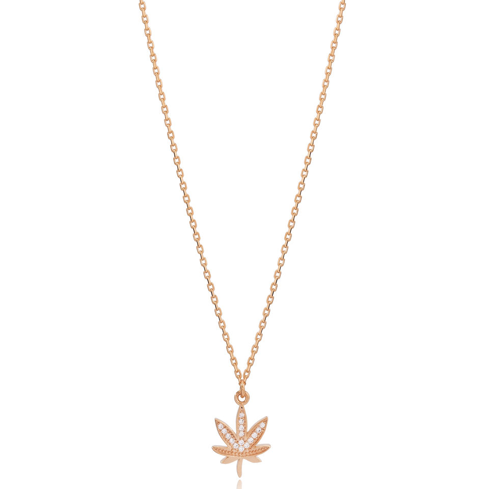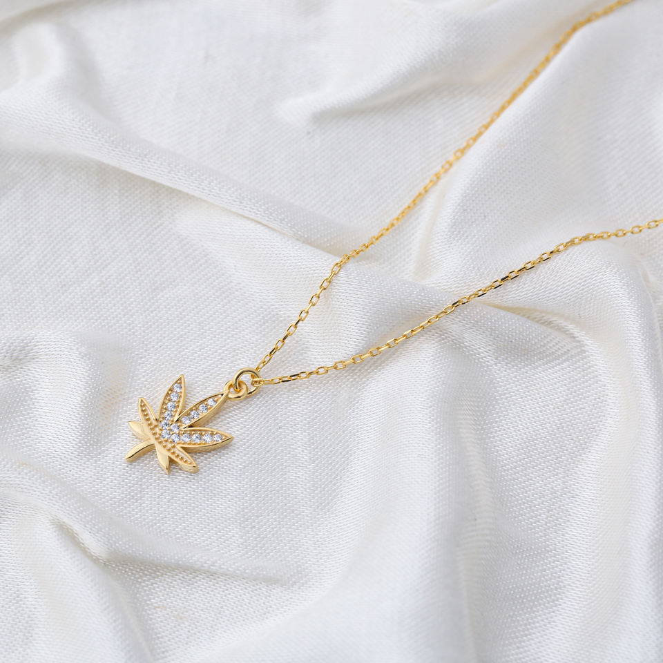 Dainty Leaf Charm Zircon Stone Chain Necklace Handcrafted Turkish 925 Sterling Silver Jewelry