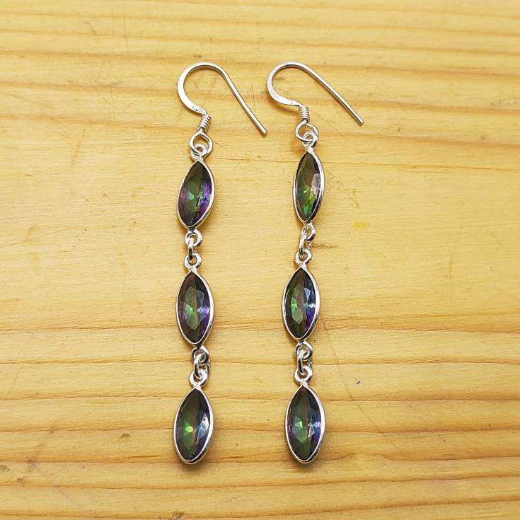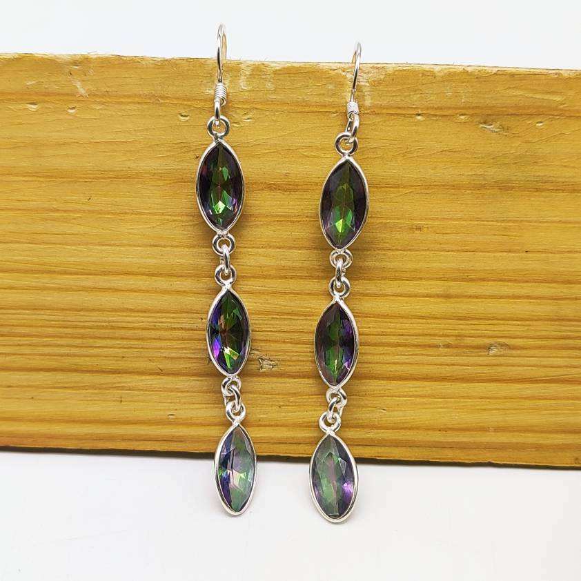Dainty Long Mystic Topaz Faceted Gemstone 925 Sterling Silver Boho Earring Handmade Long Dangle Earring