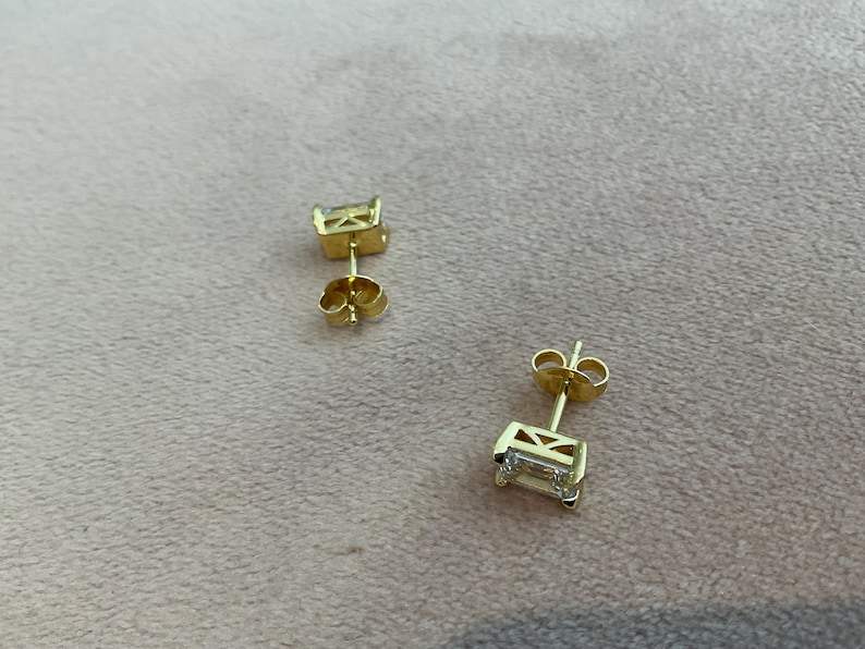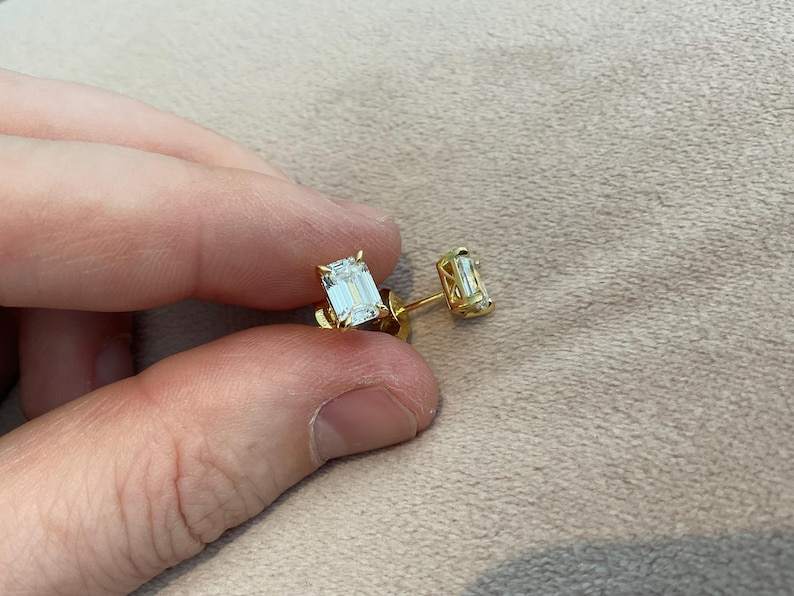Dainty Moissanite Emerald Diamond Stud Earrings Gold Plated with 925 Sterling Silver Elegant Solitaire Jewelry for Lovers Gift