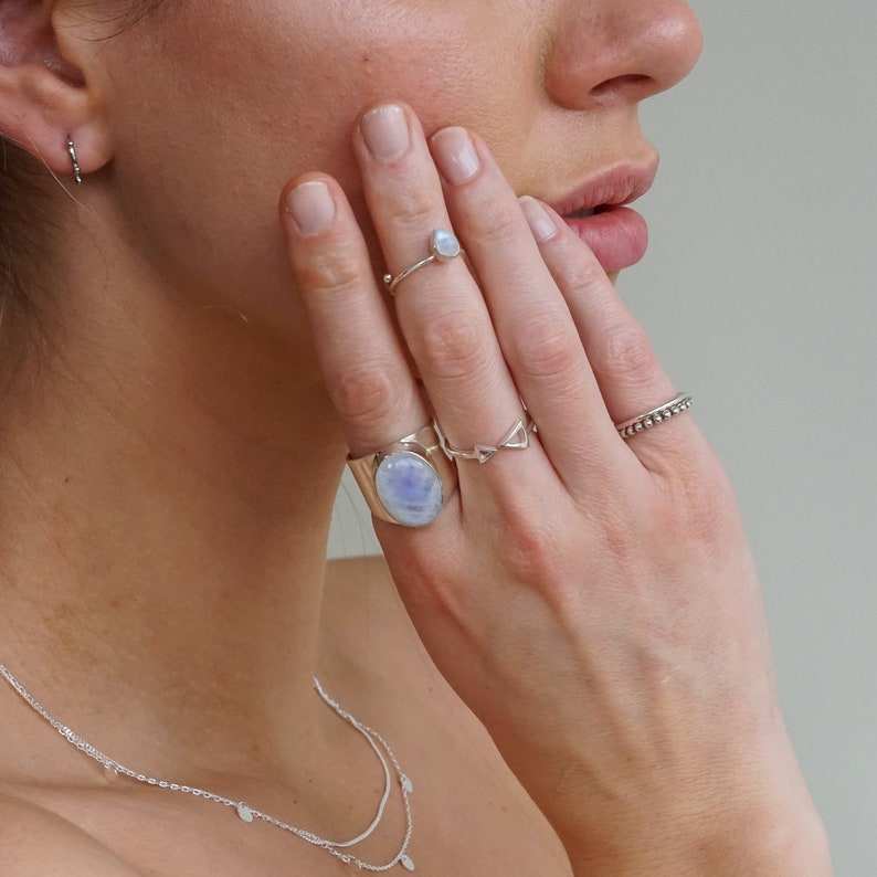 Dainty Moonstone Teardrop Ring Adjustable Sterling Silver Gemstone Bezel Setting Perfect Wedding Party Gift for Her Diamond