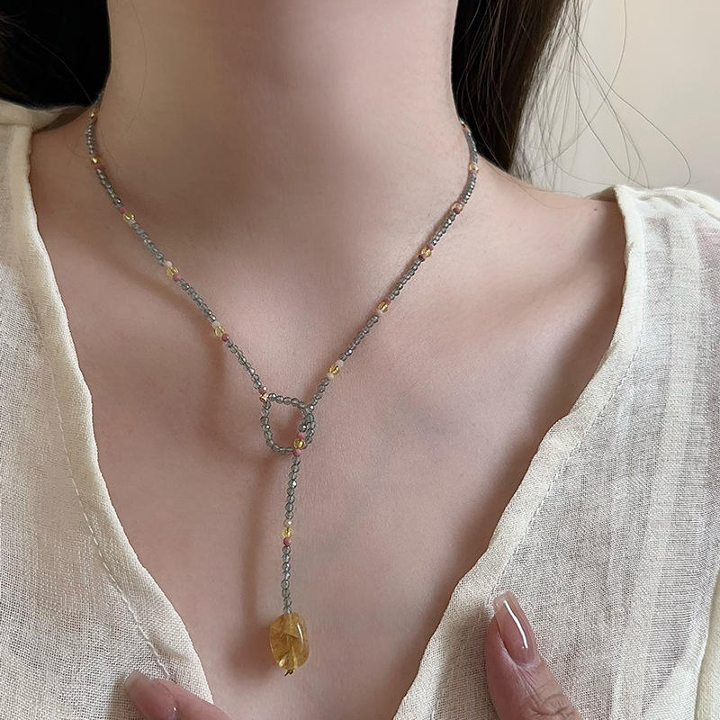Dainty Natural Irregular Colorful Morganite Stone Necklace for Women Healing Crystal Fashion Bohemian Beaded Choker Jewelry
