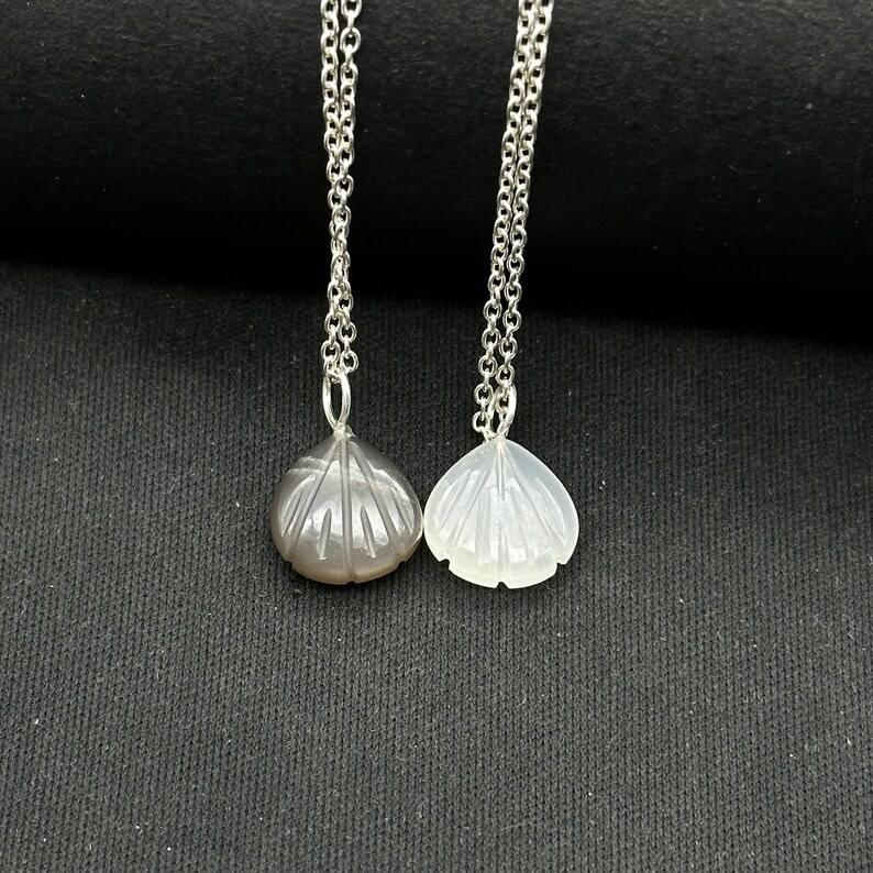 Dainty Natural White And Grey Moonstone Sea Shell Pendant Necklace Ocean Beach Lover Gift For Her