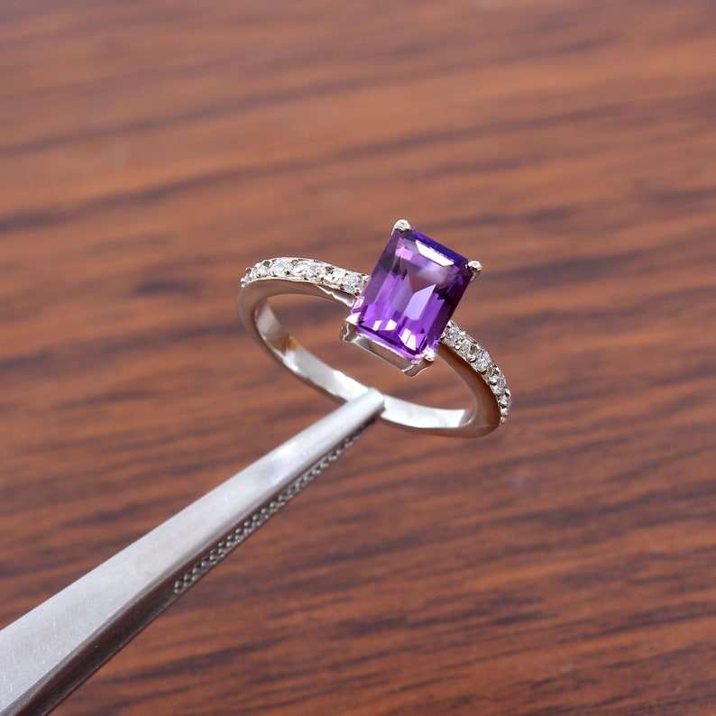 Dainty Silver Amethyst Ring for Women February Birthstone Natural Gemstone Oval Cut Bezel Setting for Wedding Mother's Day Gift