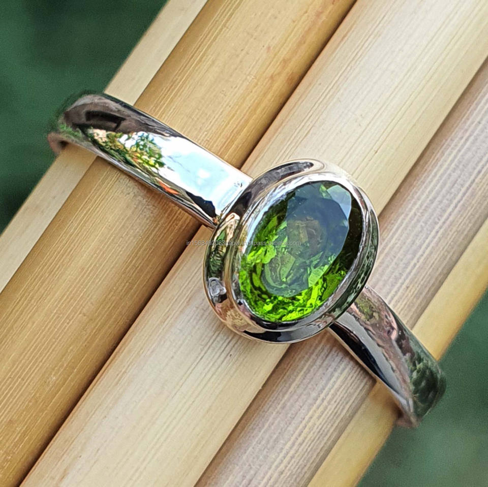 Dainty Stacking Minimalist Original Green Peridot Ring 925 Sterling Silver Handmade Trendy Classic Oval Shape Wedding Moissanite