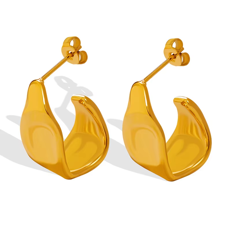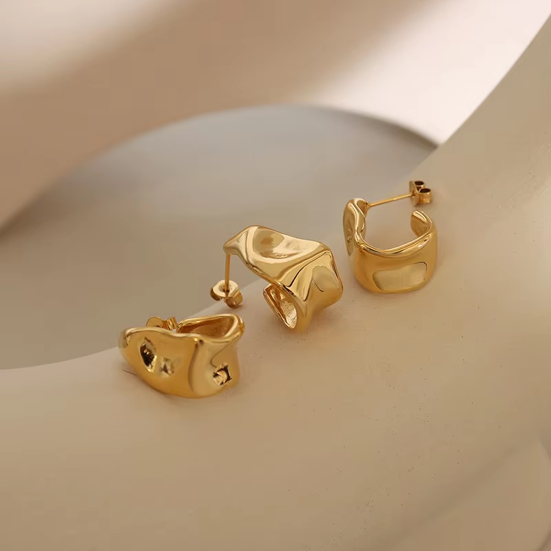 Dainty Stainless Steel 18K Gold Plated Geometric Waterproof Hoop Earrings Chunky Stud Earring
