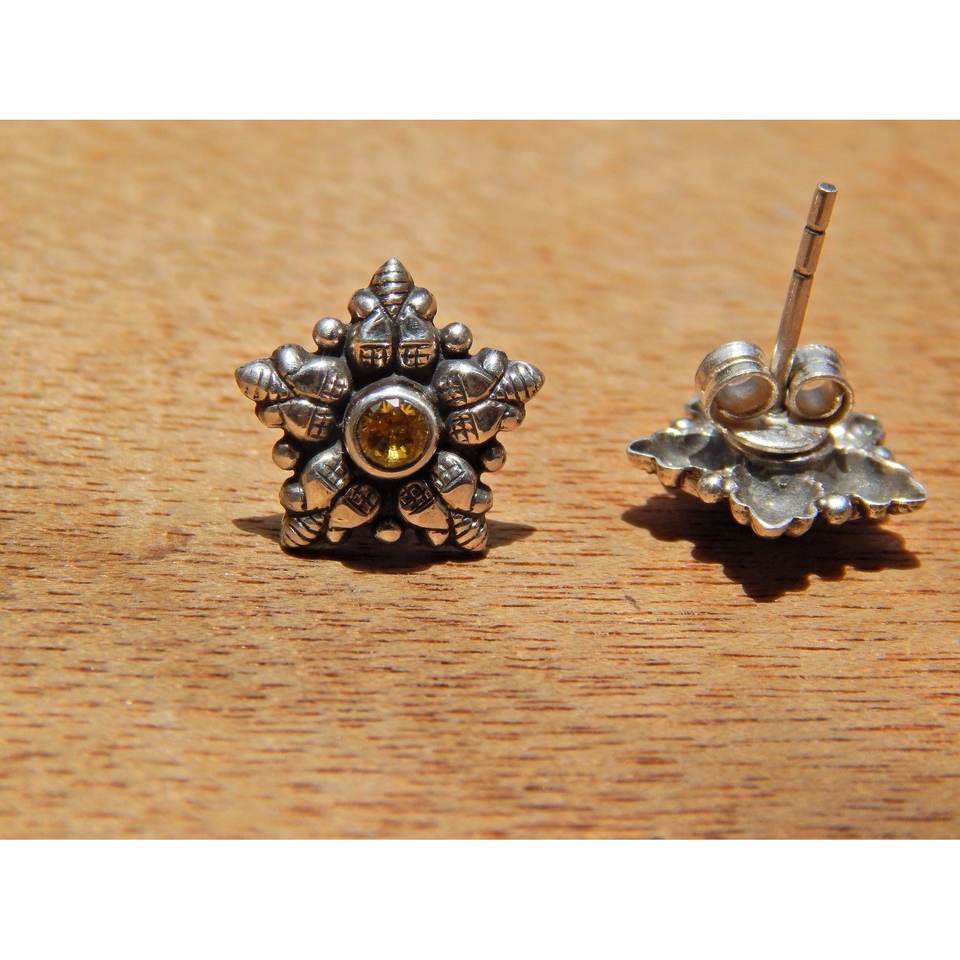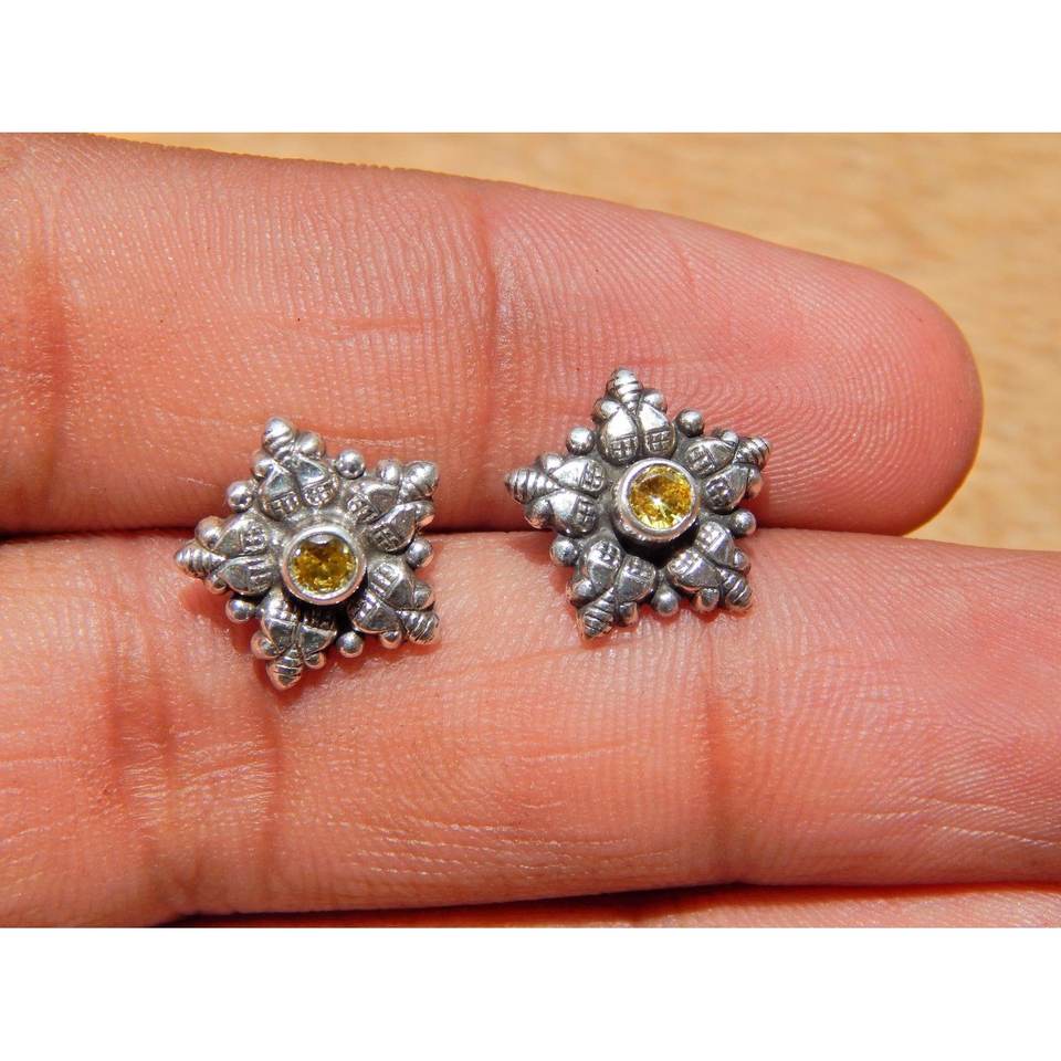 Dainty Sterling Silver Fine Stud Earrings with Elegant Citrine November Birthstone for Women