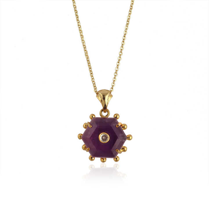 Dainty style purple amethyst hexagonal charm pendant genuine birthstone gemstone faceted stone necklace jewelry with CZ