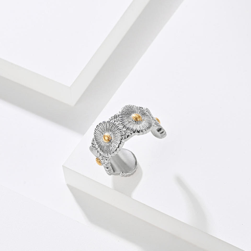 Daisy Pattern Titanium Steel Ring 18K Gold Plated Men's Fashion Jewelry Gift