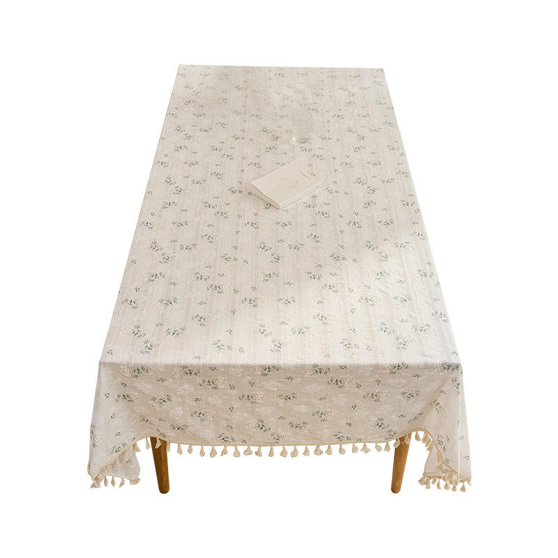Daisy Tablecloth Rectangle Printed Plants And Flowers Cotton Trim Washable Home Use