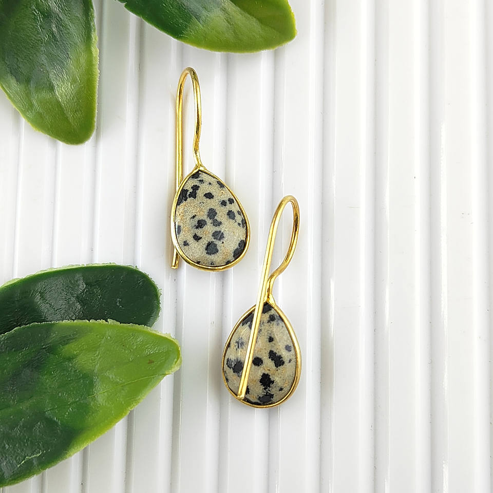 Dalmatian Jasper Gemstone Pear Shape Hook Earrings Gold Vermeil Bezel Set Fashion Jewelry Hoop Earrings Wholesaler Manufacturer