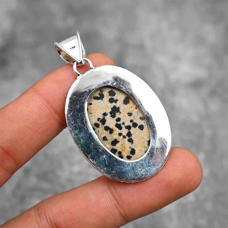 Dalmatian Jasper Pendant Gemstone 925 Sterling Silver Gold Plated Handmade Jewelry Gift for Children's Women IGI Certified
