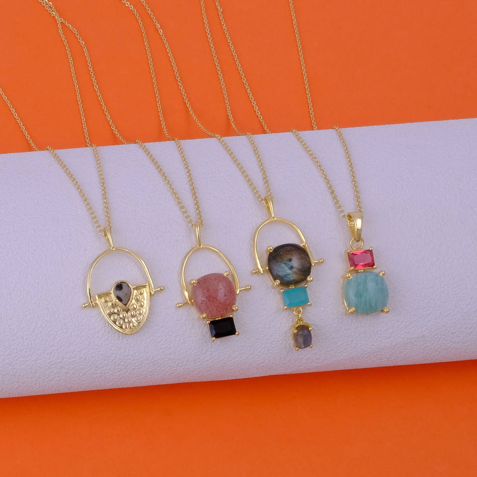 Dalmatian Jasper Pendant Necklace Gemstone Handmade Gold Plated Jewelry Necklaces Healing Crystal Necklace