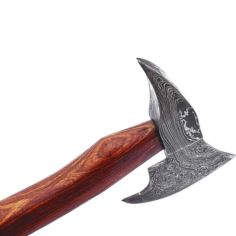 Custom Damascus Steel Axe with Full Tang Blade & Hardwood Handle Industrial Grade for Outdoor Tasks