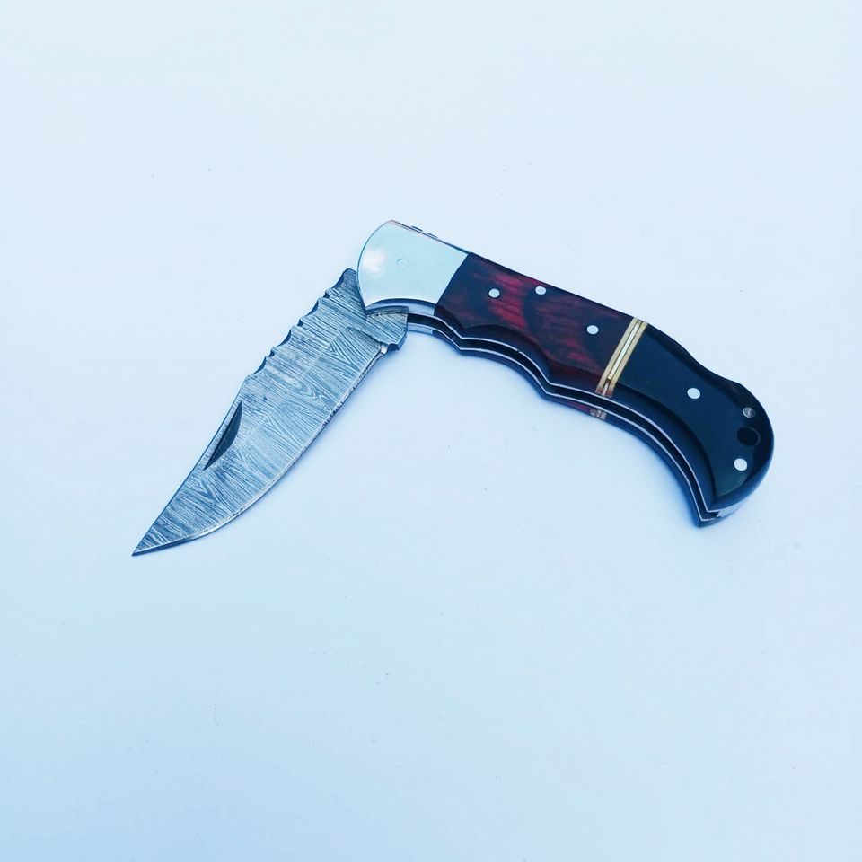 Damascus Steel Blade Customized Pocket Camping Pocket Folding Knife Wooden Handle Edc Knife Outdoor Survival Knives