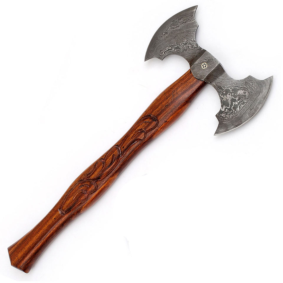 Damascus Steel Double Head Axe Hand Crafted Outdoor Tool Designed For Camping And Field Use Damascus Steel Double Head Axe