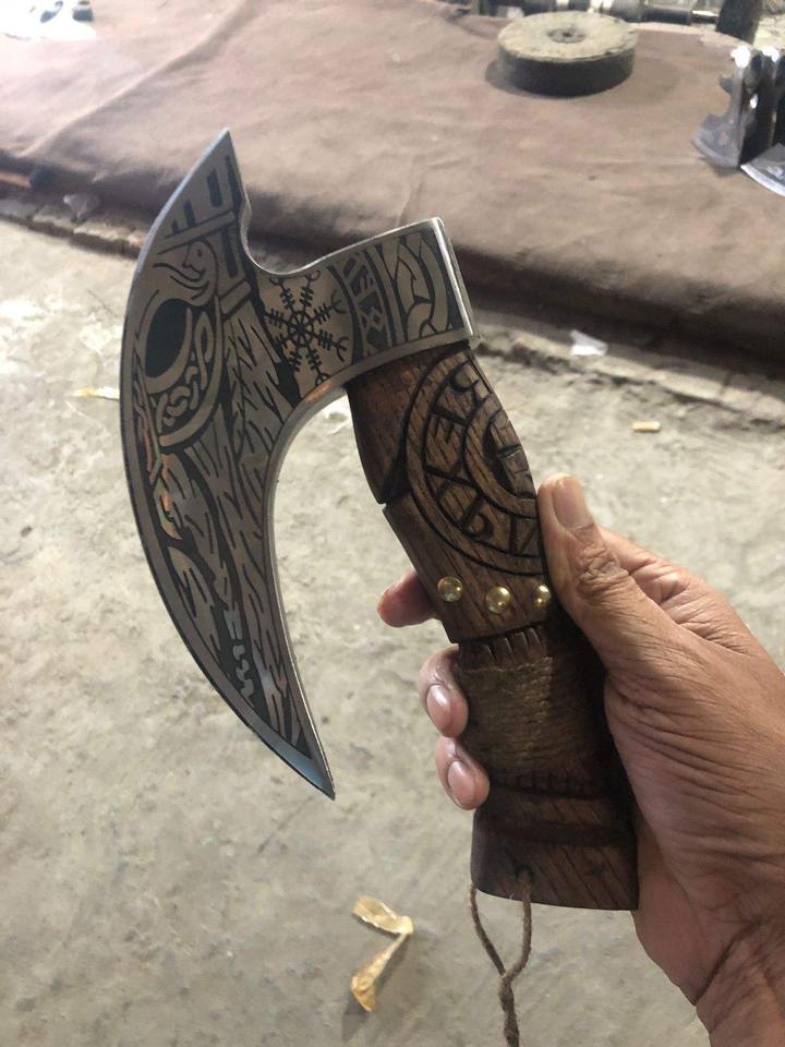 Damascus Steel Embossed Head Axe High Carbon Stainless Steel Industrial Grade with Wood Handle for Outdoor Camping