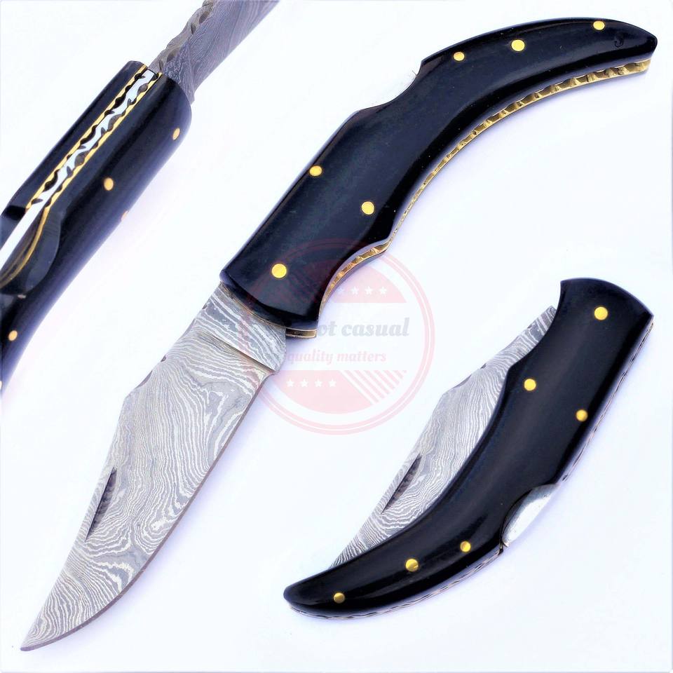 Damascus Steel Folding Blade Wooden Handle Camping Pocket Knife Outdoor Hunting Folding Knives