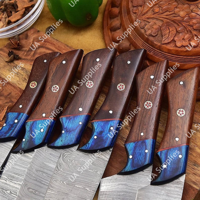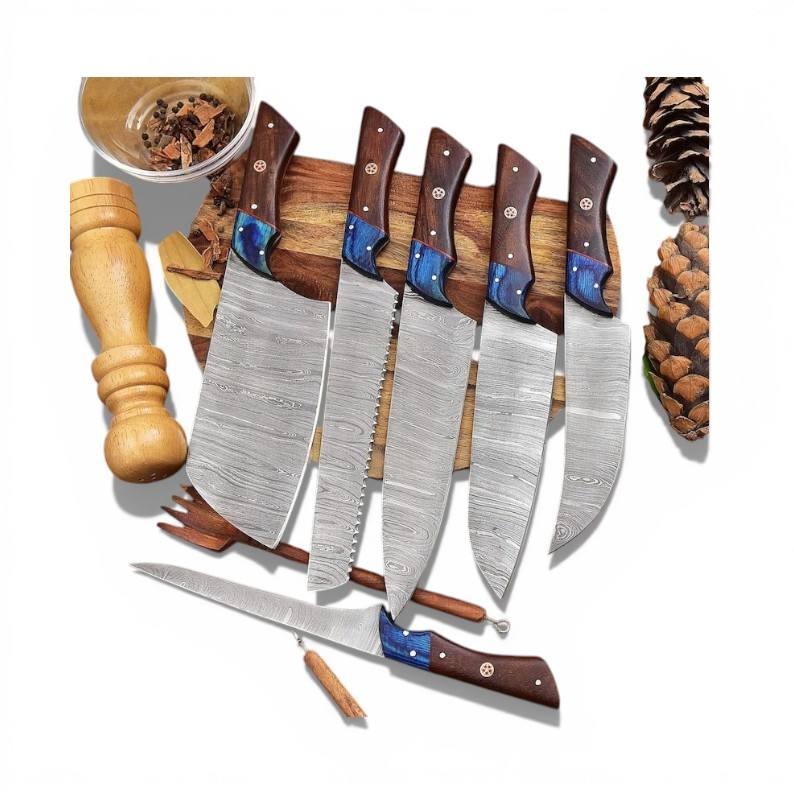 Damascus Steel Twist Pattern OEM ODM OBM Customizable 7 Pcs Professional Kitchen Knives Set Wooden Industrial Grade Eco-Friendly
