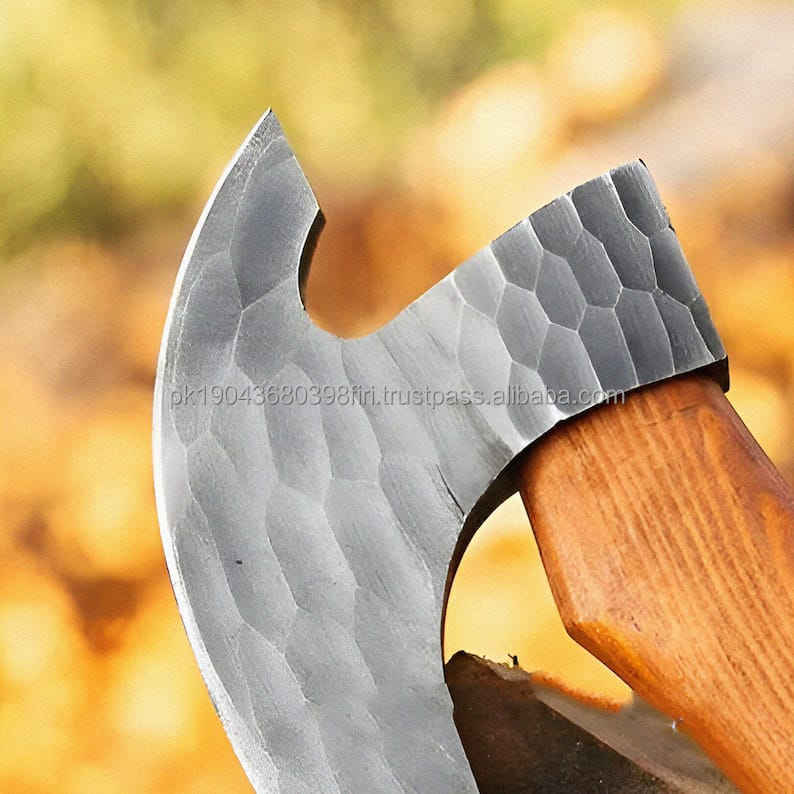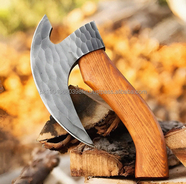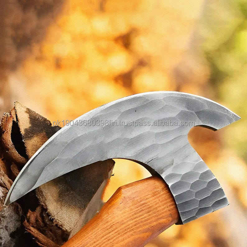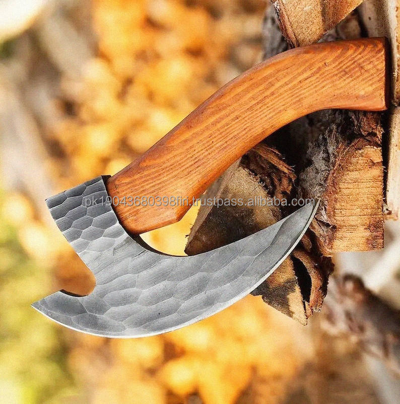 Damascus Knife Traditional Full Tang Multi-Purpose Pizza Cutter axe Meat Chopping Utility Pizza Cutter Knife axe Leather Sheath