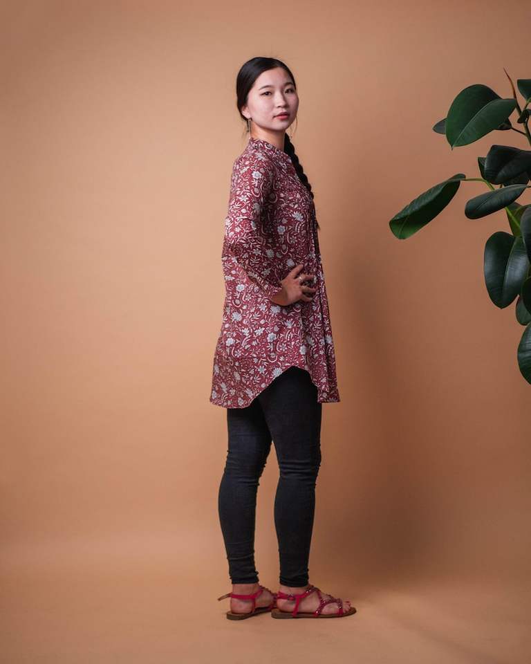 Daneen Bohemian Cotton Tunic Shirt Handcrafted Block Print Brown White