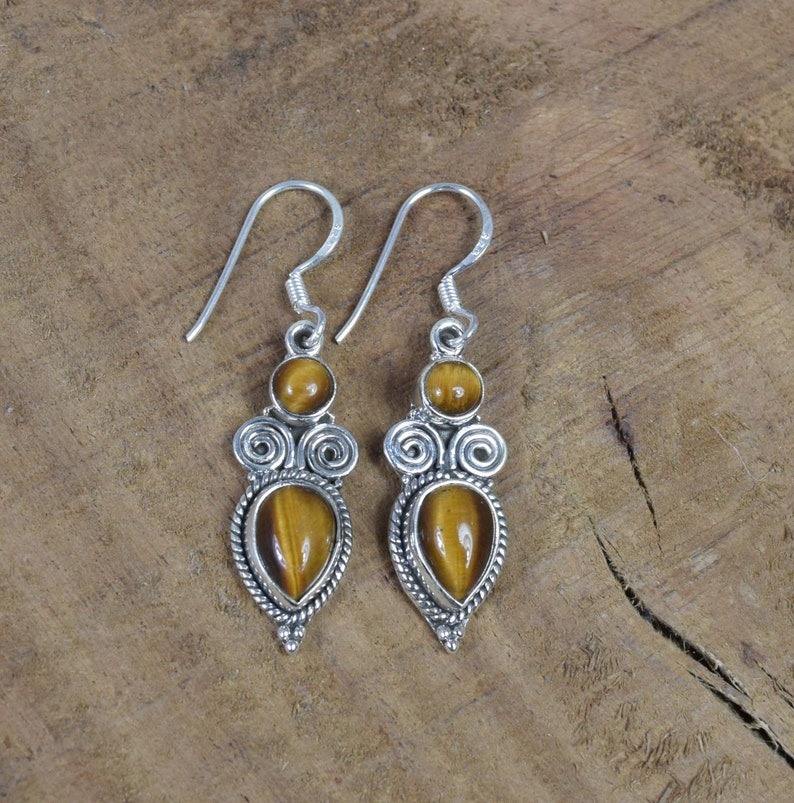 Dangle Earrings for Women and Girls Tiger Eye Gemstone 925 Solid Sterling Silver Best Design for Wedding Fine Jewelry