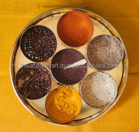 Dani Spice Dabba Cups Set 7 Brass Eco-Friendly Spice Box Organizer with Customizable Size for Masala Storage Herb & Spice Tools