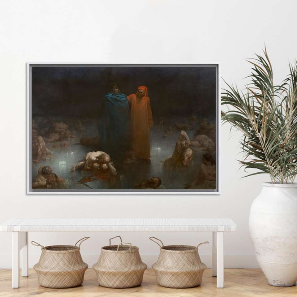 Dante and Virgil Tempered Glass Wall Art: Printed Canvas Artwork,WHITE FRAMED CANVAS