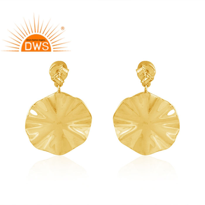 Dark Black Onyx Gemstone Wavy Disc Gold Plated Silver Earring Jewelry for Women Gift for Her Vintage Collection