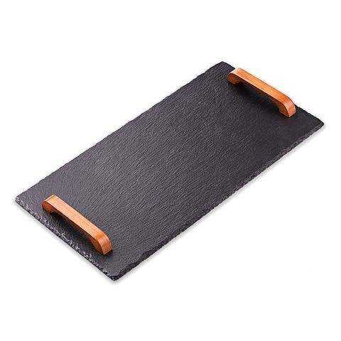 Dark Black leather serving tray for decorative coffee table placement or functional food and drink presentations