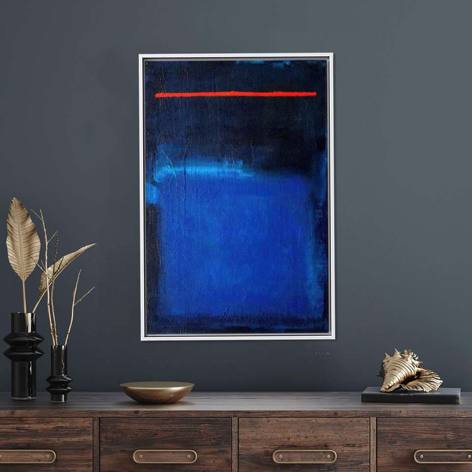 Dark Blue Abstract Canvas Wall Art, Rothko Style Print with Red Line,White Framed