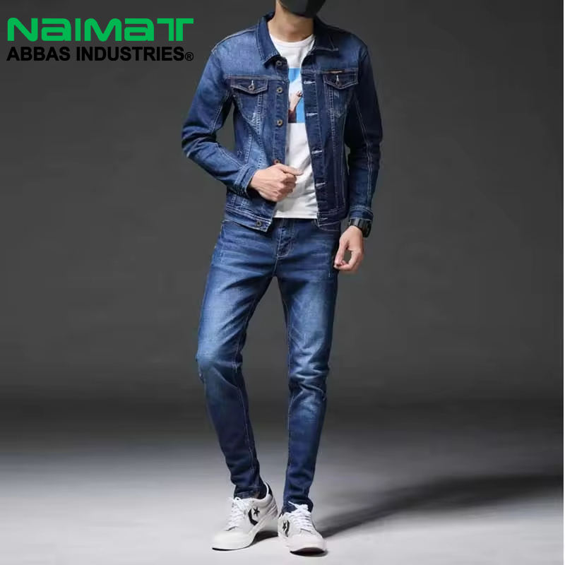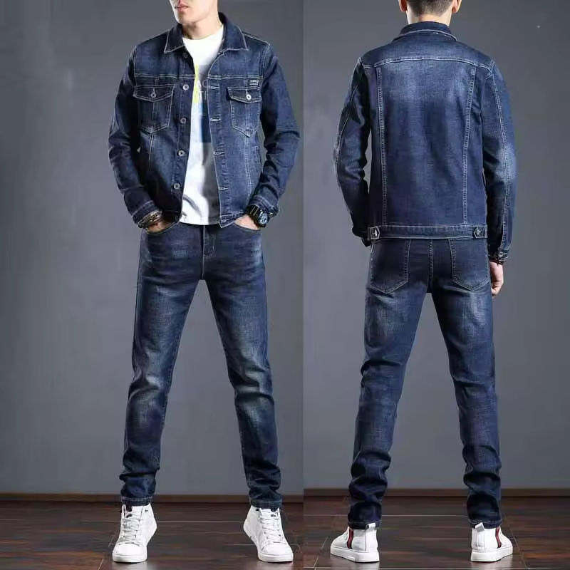 Dark Blue Denim Jacket for Men Button Front with Chest Pockets Casual Outfit Matching Streetwear Jeans Plain Dyed