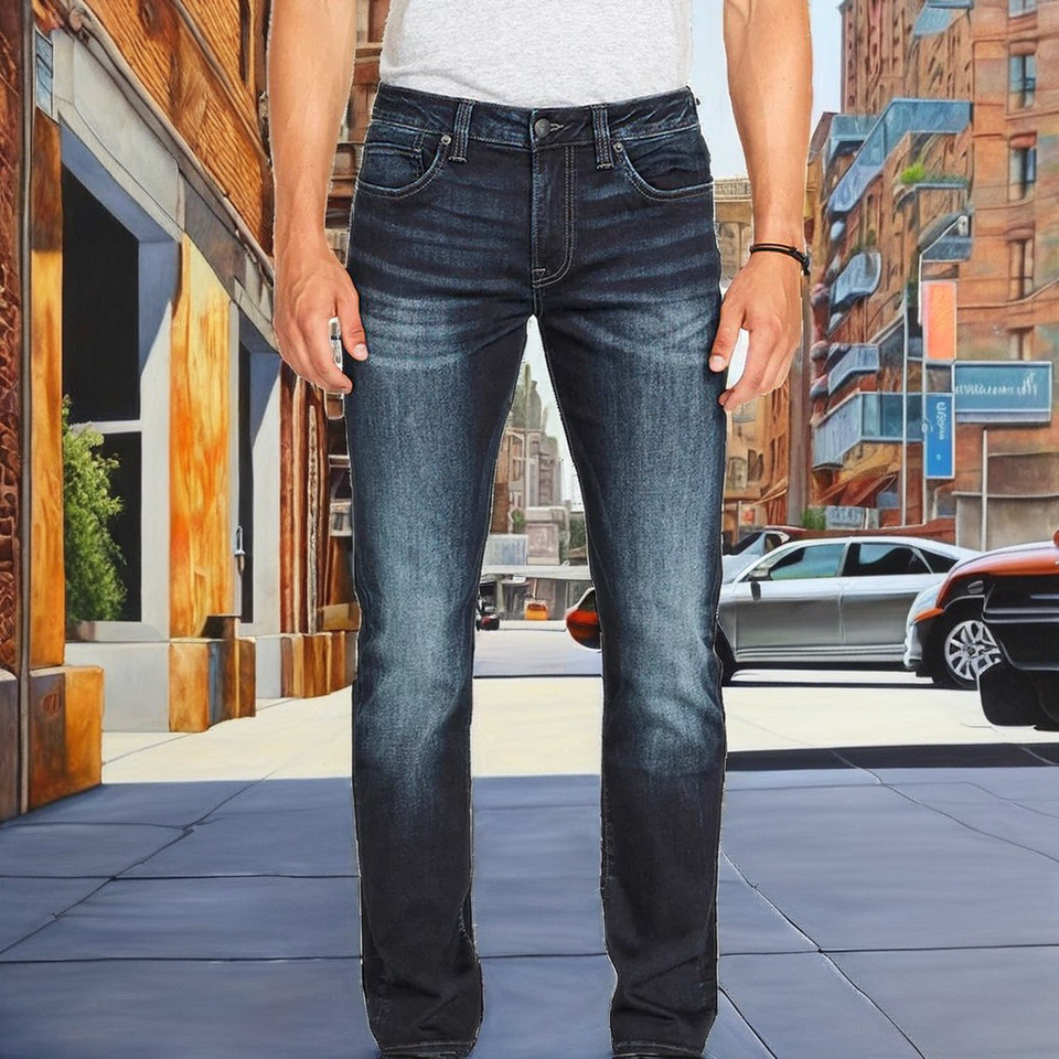 Dark Blue Denim Straight Fit Jeans Big Men High Street Regular Tall High Waist Zipper Fly Waterproof Washed 100% Cotton
