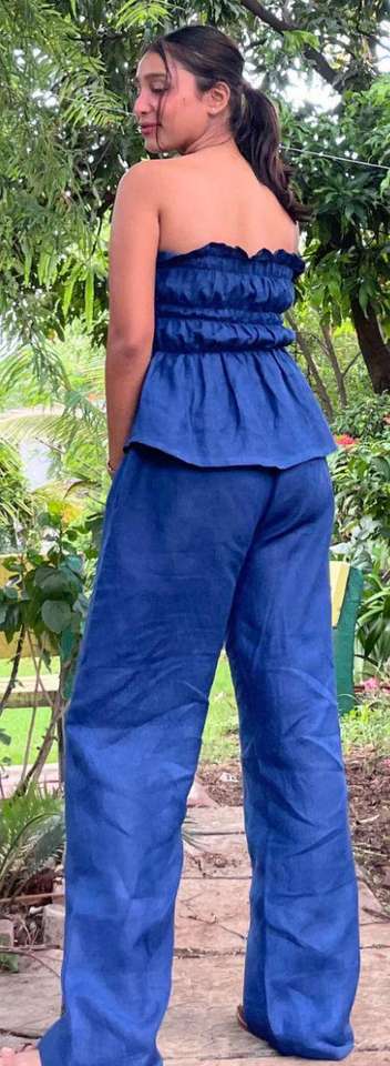 Dark Blue Gelato Co-ord Pant Set by for Shein 100% Cotton Strapless Front Tie-Up Peplum Top with Short Length Pants Knitting
