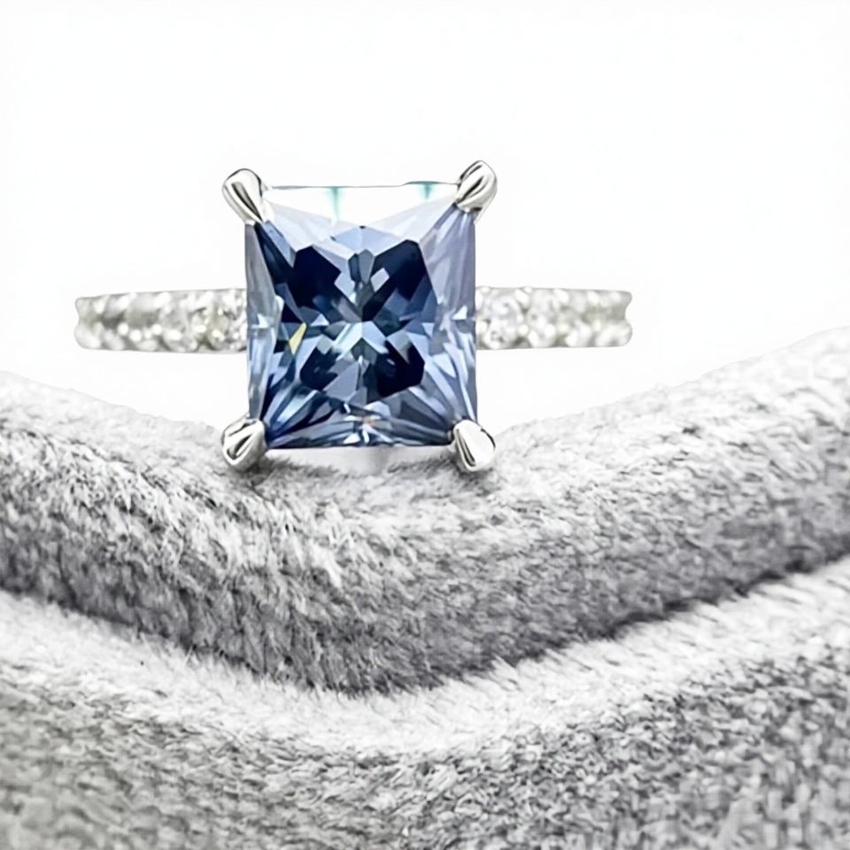 Dark Blue Moissanite Diamond Engagement Ring Princess Cut Solitaire Ring Moissanite Sterling silver Beautiful Customized Ring