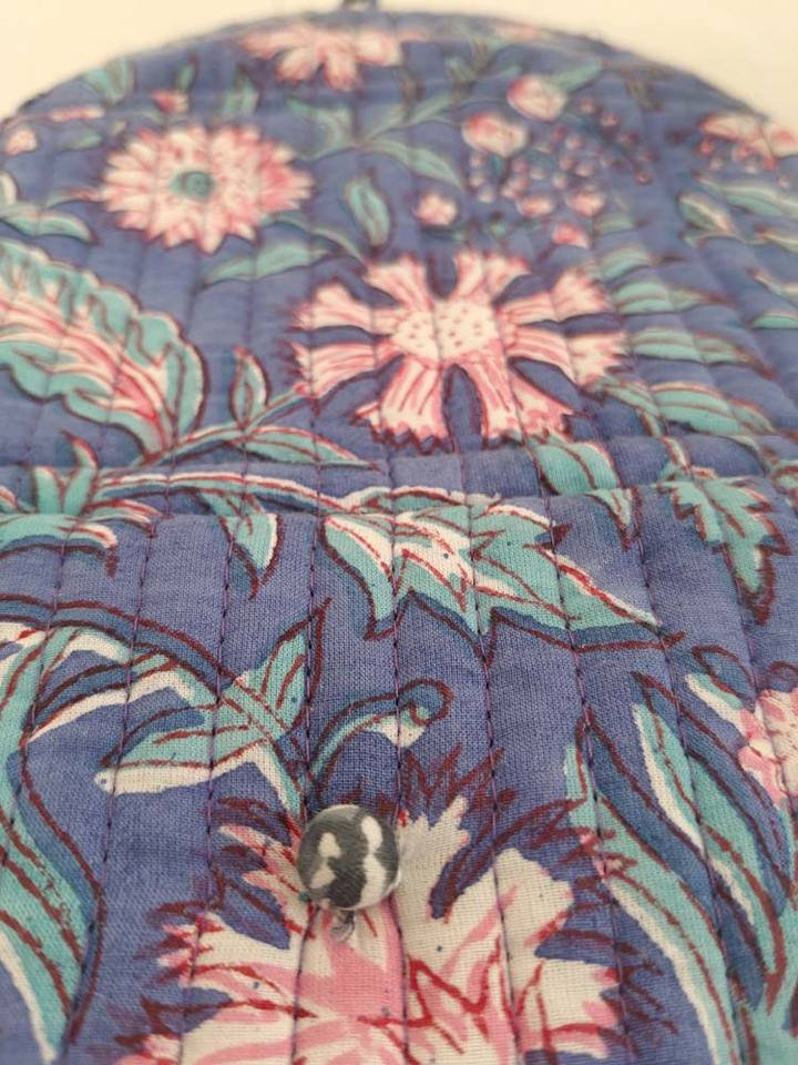 Dark Blue Quilted Jewelry Bag Eco-Friendly Zip Closure Lightweight Cotton Hand Block Printed Casual Handbags for Daily Simple