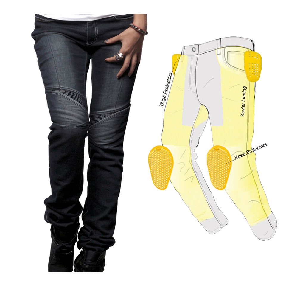 Dark Blue Skinny Fit Motorcycle Kevlar Jeans with Kevlar Jeans For Motorcycle Lining and CE Certified Removable Armor
